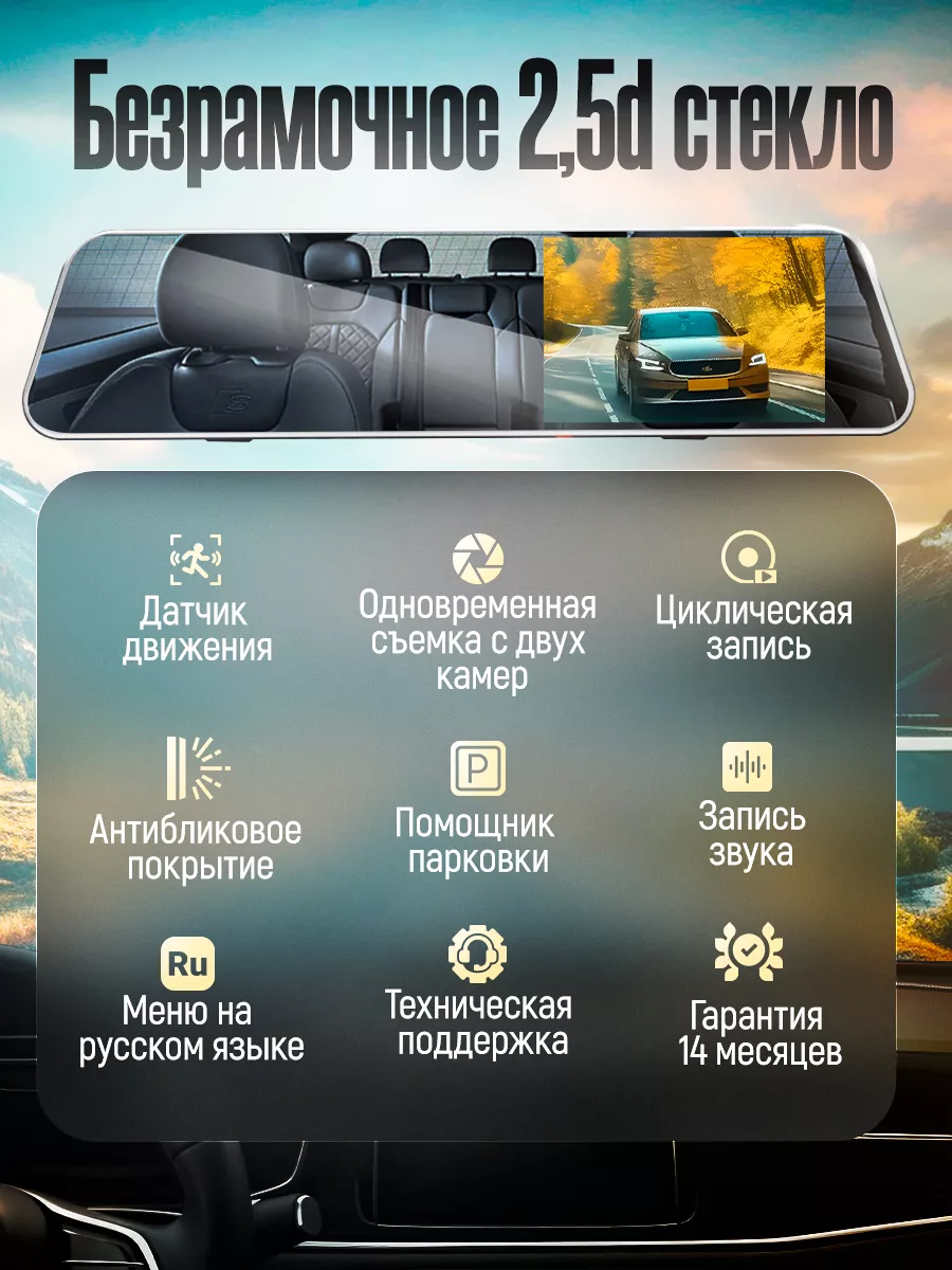 Автомобильный видеорегистратор в виде салонного зеркала с сенсорным экраном — это незаменимое устройство для любого водителя, предназначенное для фиксации происходящих на дороге событий. Этот трендовый регистратор 2025 года объединяет в себе зеркало заднего вида, помощника парковки и камеру наблюдения, обеспечивая безопасность при движении вперед и назад.